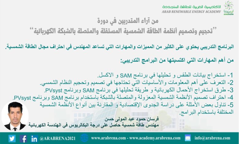 أخبارالبرامج التدريبيةالدورات التدريبيةالطاقة الشمسيةباحثون عرب