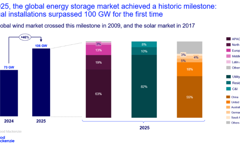 ما الذي يتغير في سوق تخزين الطاقة بعد تخطي حاجز 100 غيغاواط عالميًا؟